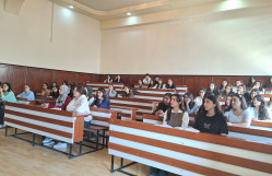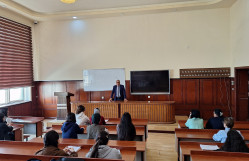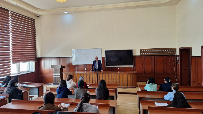07 oktyabr 2025-ci il tarixində Fizika fakültəsinin I kurs tələbələri ilə 44 günlük II Qarabağ savaşının 5 illiyinə həsr olunmuş tədbir keçirilib. Tədbirdə Fizika fakültəsinin sosial məsələlər və tələbələrlə iş üzrə dekan müavini Məhəmməd Məhərrəmov çıxış edib. O, Dağlıq Qarabağ münaqişəsinin tarixi, səbəbləri I Qarabağ savaşında baş vermiş hadisələr, torpaqlarımızın işğalına gətirən siyasi proseslər barədə tələbələrə ətraflı məlumat verib və II Qarabağ savaşında qazanılan böyük Zəfərə gedən yoldan danışıb. O, qeyd edib ki, bu Zəfərin əsası hələ keçən əsrin əvvəlləri Ulu Öndər Heydər Əliyevin uzaqgörən siyasəti ilə qoyulub. Belə ki, Heydər Əliyev ölkəmizə qarşı yönəlmiş təhdidləri məharətlə zərərsizləşdirərək, Azərbaycanın müstəqilliyini əbədi etməyi bacarmış və ölkəmizi yüksək inkişaf yoluna çıxarmışdır. Onun rəhbərliyi ilə güclü nizami ordu quruculuğuna başlanılmış, güclü və dayanıqlı iqtisadiyyat formalaşmış, ölkənin beynəlxalq nüfuzunun yüksəlməsi, vətəndaşlarımızın vahid milli ideya ətrafında həmrəyliyi təmin olunmuşdur. Bütün bu işlər Ulu Öndərin layiqli davamçısı İlham Əliyev tərəfindən yüksələn xətlə davam etdirilmişdir. Nəticə göz qabağındadır: Azərbaycanın bütün ərazisində dövlət suverenliyimiz bərpa olunub, ölkəmiz güclü iqtisadiyyata malikdir, beynəlxalq nüfuzumuz günü-gündən artır. Çox qısa zamanda azad olunmuş ərazilərdə misilsiz bərpa-quruculuq işləri həyata keçirilib, ev-eşiyindən didərgin düşmüş soydaşlarımızın geri qayıtması təmin olunub. Dekan müavini daha sonra xalqımızın milli-mənəvi dəyərlərinin qorunmasının, tariximizi öyrənməyin vacibliyini diqqətə çatdıraraq, hər bir tələbənin ölkəmiz üçün yararlı mütəxəssis kimi yetişməyə çalışmasını tövsiyə edib.