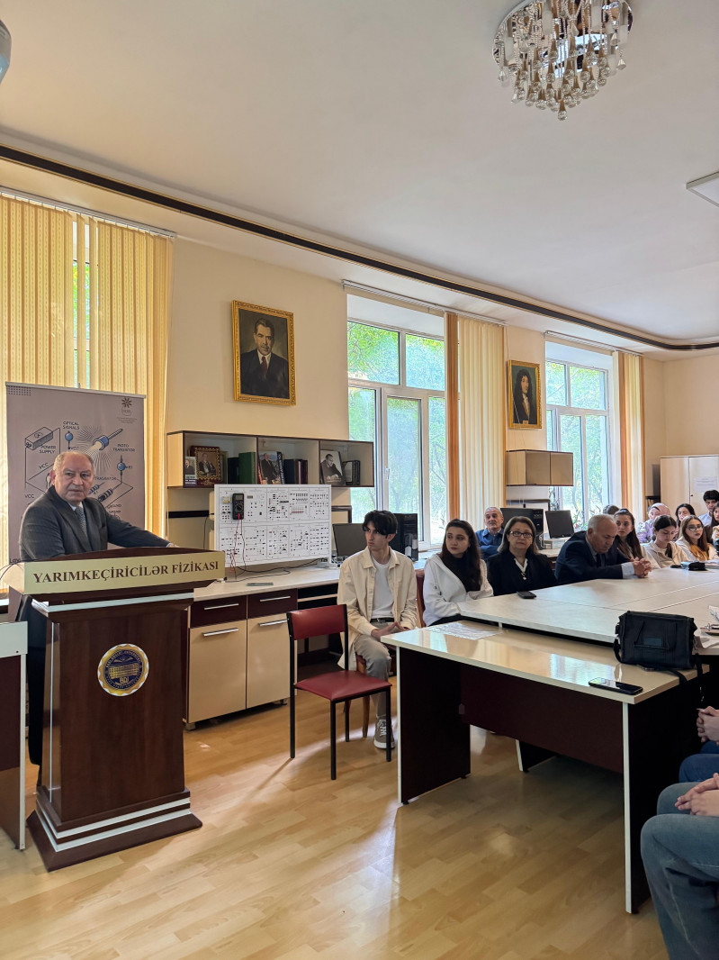 21 oktyabr 2025-ci il tarixində Fizika fakültəsinin Yatımkeçiricilər fizikası kafedrasının növbəti elmi seminarı keçirilib. Seminarda kafedra müdiri Vaqif Salmanov "InSe nanohissəciklərində qeyri-xətti optik hadisələr" mövzusunda məruzə edib. Təqdim olunan məruzədə lazer şüalarının təsiri ilə yarımkeçiricilərdə baş verən qeyri-xətti optik hadisələr (harmonikaların generasiyası, zonaların dolması və çoxfotonlu udulma) haqqında məlumat verilib. İnSe nanozərrəciklərinin lazer ablyasiyası üsulu ilə sintezi, struktur analizi və yüksək optik həyəcanlaşmada onlarda baş verən qeyri-xətti optik udma və kvant ölçülü hadisələr şərh edilib.